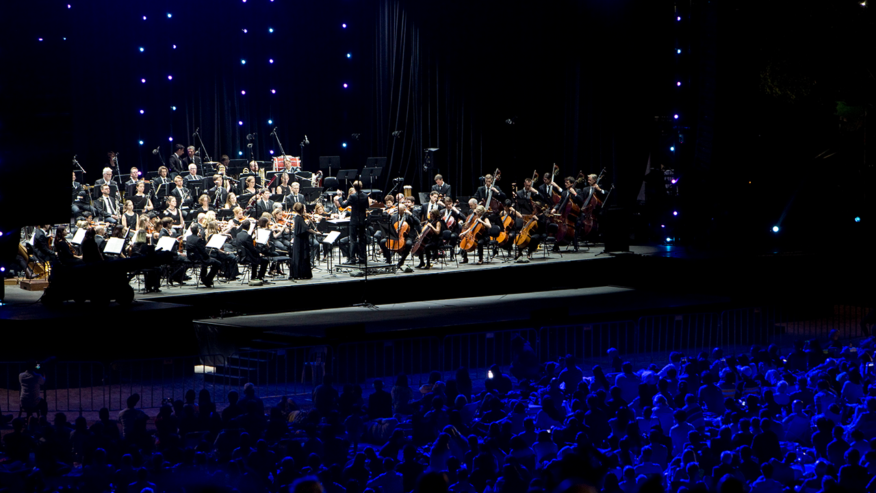 Sydney Symphony Under the Stars takes place in Parramatta Park at a location called The Crescent, an outdoor event space formed around a bend of Parramatta River creating a natural amphitheatre.
