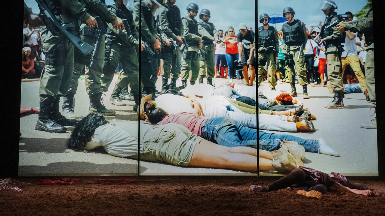 At the production’s heart is a real-life incident: the 1996 massacre of activists from the Landless Workers’ Movement by a unit of Brazilian federal police. A peaceful blockade of a highway ended bloodily, with 19 of the protestors killed.