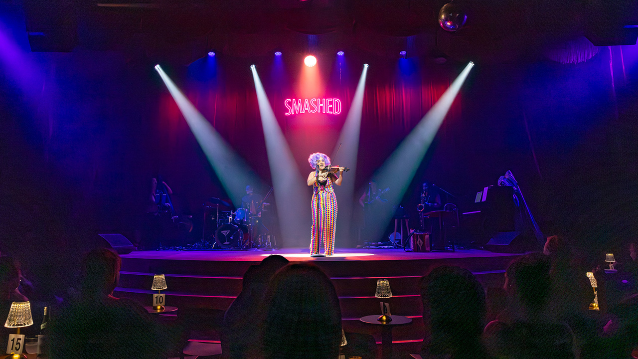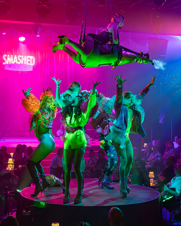 Post-show the fabulousness continues. Falconer and her Smashed ensemble lead everyone out to the Moonshine Bar.