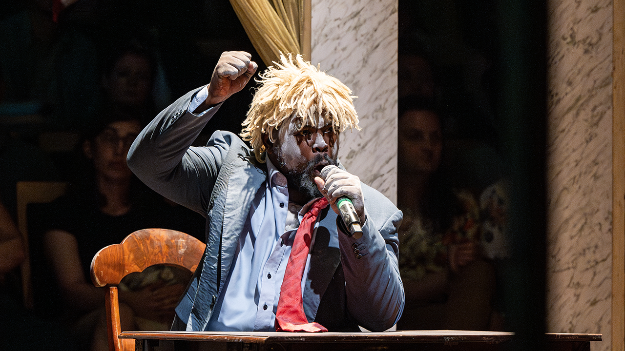 Dark Noon flips the script on the Wild West, envisioning US history as absurd, horrifying and deeply profound. A pioneer town springs up in real time as an extraordinary cast of South African actors reimagines the frontier through an outsider’s lens. With slapstick humour, satire and breathtaking stagecraft, this breakout hit of Edinburgh Fringe Festival and New York’s St. Ann’s Warehouse transforms Sydney Town Hall.